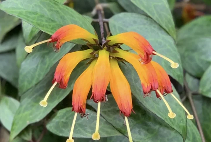 The 12-inch hanging Black Pagoda Lipstick Plant is a showstopper, perfect for vertical spaces. Its long cascading vines are covered in richly patterned leaves, creating a lush and dramatic display. When blooming, vivid red flowers emerge, adding an extra layer of beauty.